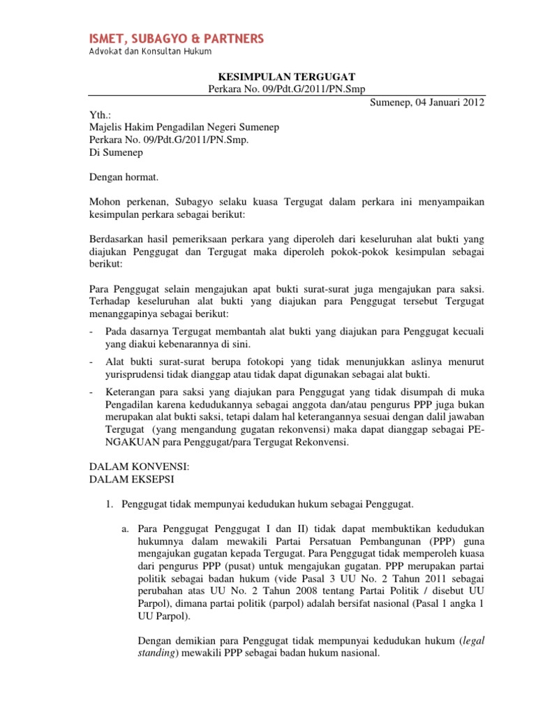 Posted by saifurputra on maret 22, 2013 in uncategorized. Eksepsi / jawaban tergugat banda aceh, 17 september 2014. Setelah membaca dan mempelajari dengan seksama surat gugatan dari penggugat, maka bersama ini kami sampaikan jawaban dan eksepsi atas surat gugatan tersebut. Jalan cut mutia nomor 23 banda aceh. Tugas matakuliah hukum acara perdata (b) membuat surat gugatan alif permana putra / 02011181419092 palembang,28 februari 2016, nomor :123/g.pdt/rcp/ix/2015 perihal :